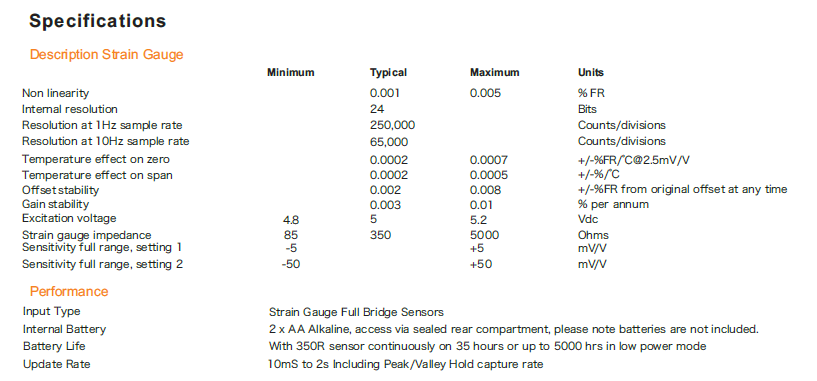 Single pass calibration (direct mV/V) with dual range for values such as kg and lb.