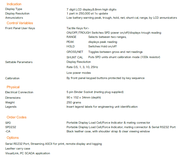 SPD (shown in main photo) the RS232 output option (shown in photo top left ) and photo bottom left showing optional black leather carry case with clear viewing window and shoulder strap for both versions Load Cell.