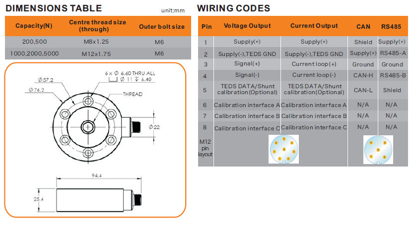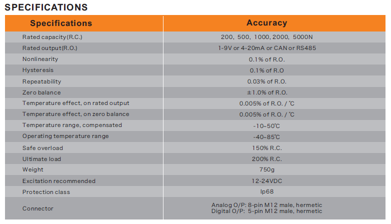 This type of load cell is easy to use for measuring tension or compression loads from 200N to 5kN, and is capable of rejecting side forces that would otherwise affect accuracy.