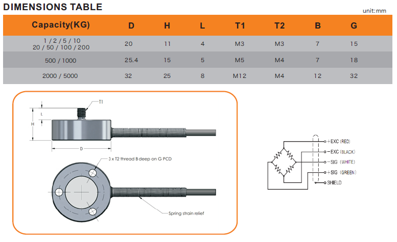 Model LTCB is a threaded load button for tension and compression load measurements up to 5000 kg.