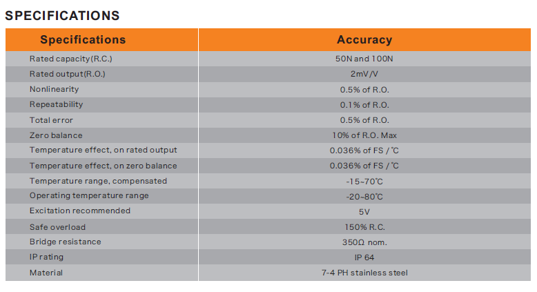 This type measures tensile and compressive loads up to 100N with better than± 0.5% non linearity.