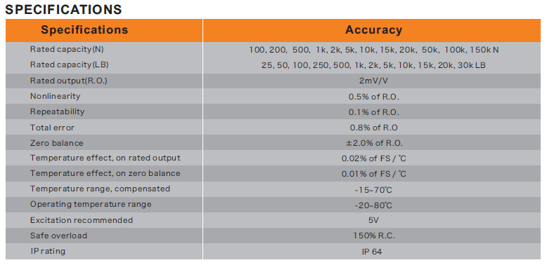 This type providesa range of capacities up to 150 kN or 30klb with better than ±0.5% (full scale)non-linearity.