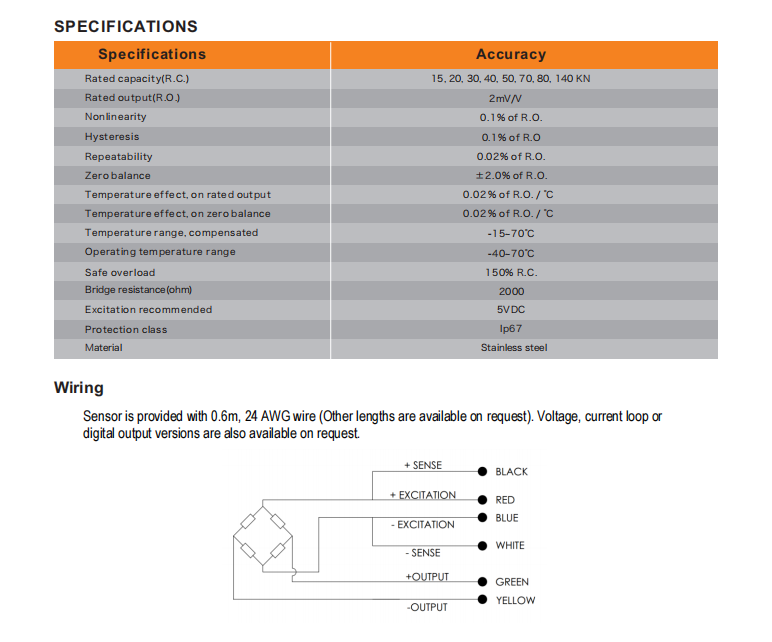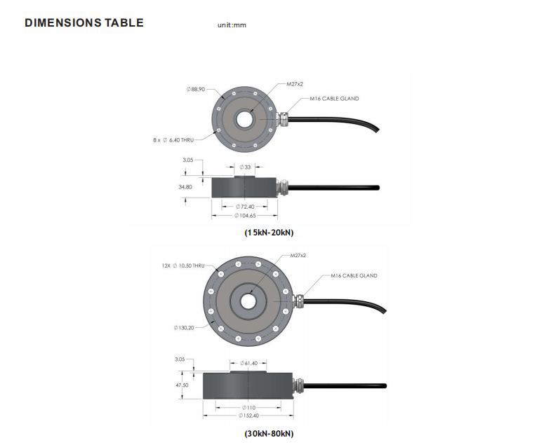 overall performance. This type measures tensile and compressive loads up to 140kN with better than ±0.1% non-linearity. Covers are fully welded and rated to IP67.